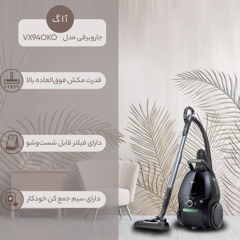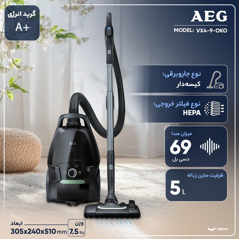 سایر توضیحات : بدنه پلاستیک با دوام و نشکن / لوله فلزی تلسکوپی / محل قرارگیری سریهای کوچک روی دستگاه / قرار گرفتن به صورت عمودی و افقی / شلنگ پلاستیکی منعطف و بادوام / نشانگر LED میزان مکش / نشانگر کثیفی فیلتر / دسته ارگونومیک / لوله آلمینیومی بسیار سبک