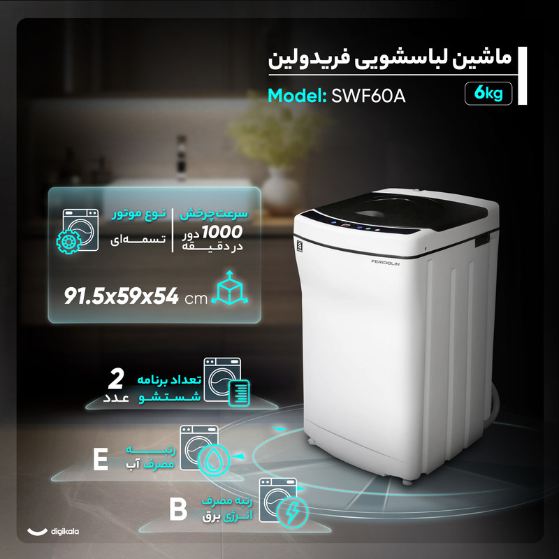 ماشین لباسشویی 6 کیلوگرم اتوماتیک فریدولین مدل SW60