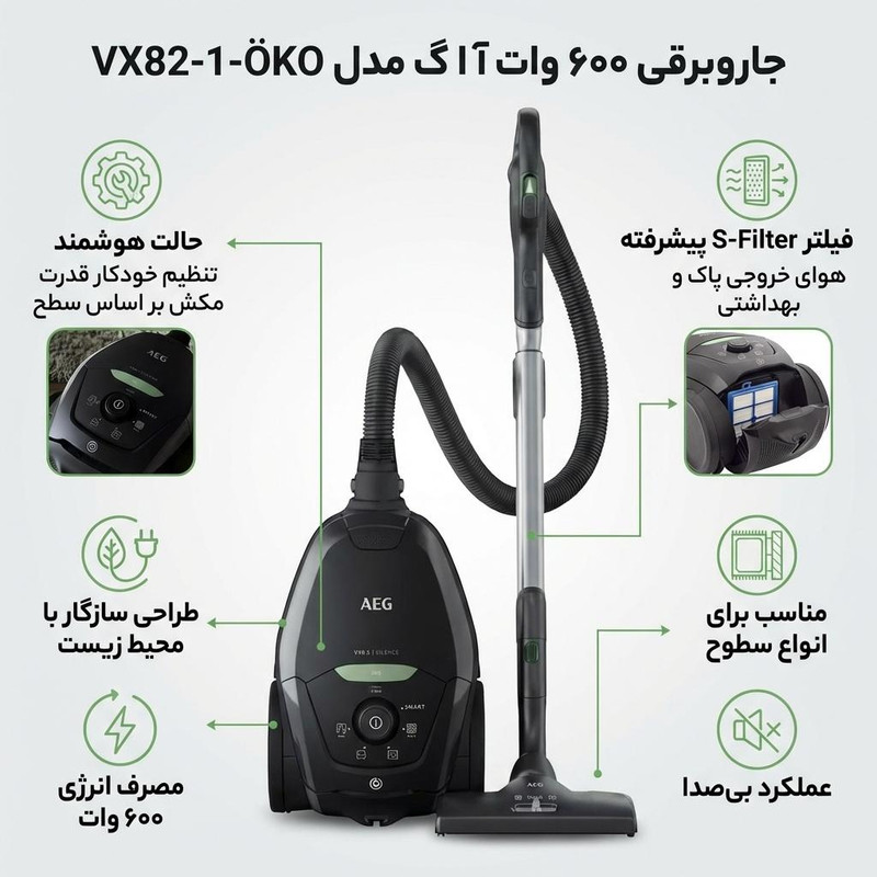 سایر توضیحات : قدرت موتور 600 وات - موتور کم صدا با تکنولوژی Silent Air - تحت لیسانس آلمان - حجم کیسه 3.5 لیتری - دارای فیلتر هپا - دارای سیم جمع کن - قابلیت چرخش 360 درجه خرطومی