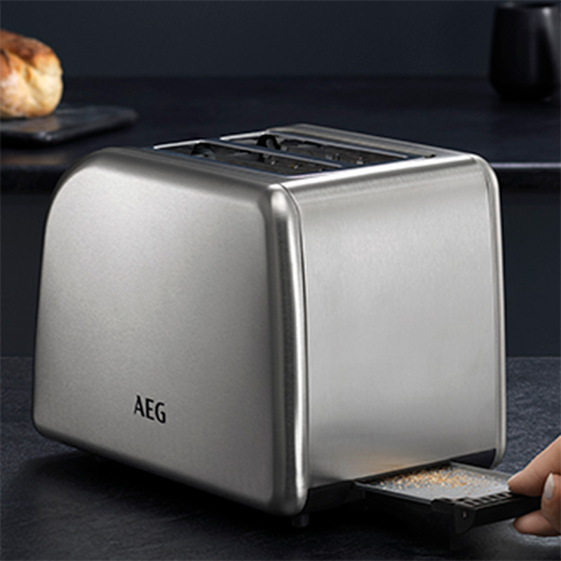 توستر AEG مدل AT7750 با حداکثر توان 850 وات ، دارای بدنه ای از جنس استیل و به صورت عایق حرارت تولید شده است.در این دستگاه دو جایگاه برای قرار گیری نان تعبیه شده است .توسط توستر AEG می توانید نان های درون منزل را به صورت تازه و برشته میل کنید و از دور ریز و اصراف در مصرف نان جلوگیری کنید.
