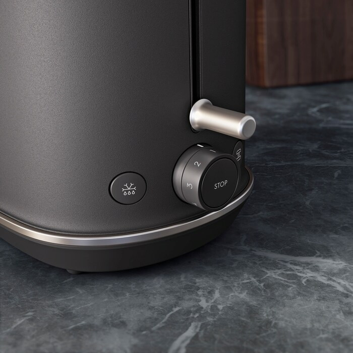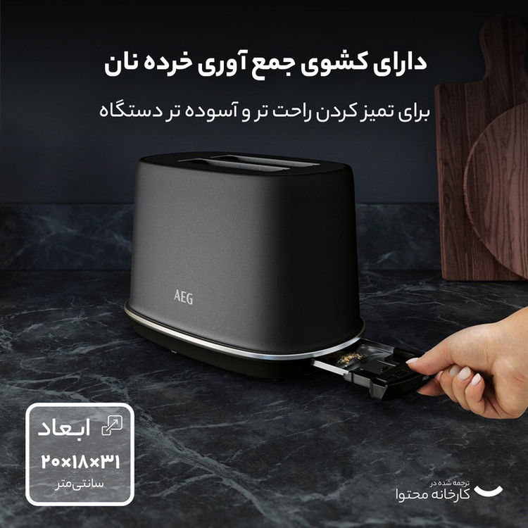 توستر آاگ مدل «T7-1-6BP» از ابعاد متناسب و وزن نسبتا سبک برخوردار است. دکمههای تعبیه شده بر روی توستر، عملکرد یخزدایی، توقف عملیات و برشته کردن در اختیار میگذارد. همچنین تنظیم حرارت در 4 حالت و تُست خودکار برای محصول در نظر گرفته شده است. لازم است بدانید که ابعاد خانههای گرمکن این توستر به اندازه کافی بزرگ هستند و شما میتوانید نانهایی با اندازه بزرگ و ضخامت زیاد در آنها قرار دهید. همچنین سینی جمعآوری خرده نان در پایین دستگاه قرار گرفته است و به صورت کشویی طراحی شده است تا به راحتی از بدنه توستر بیرون بکشید.